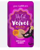 Salmón salvaje de Alaska, caldo de salmón y aceite de girasol mezclados en una mousse cremosa que encanta a los gatos. Sin cereales ni patatas Suave y sedoso Ingredientes no transgénicos
