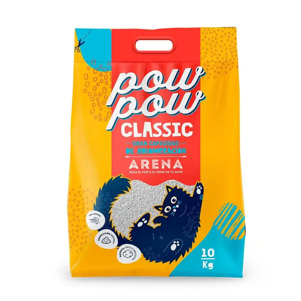 La arena Powpow Classic tiene los siguientes beneficios: Poca emisión de polvo. Arena con gran capacidad de aglomeración Indicada para todas las etapas de vida. Grano tecnificado, para evitar que se quede pegado en las paticas de tu mascota. Neutraliza malos olores sin aromas artificiales para una mejor aceptacion por parte de tu gato. Hecha a base de betonita, la que permite una aglomeracion instántanea de la orina y las heces, lo que permite una fácil limpieza de la arenera y optimización de la arena.