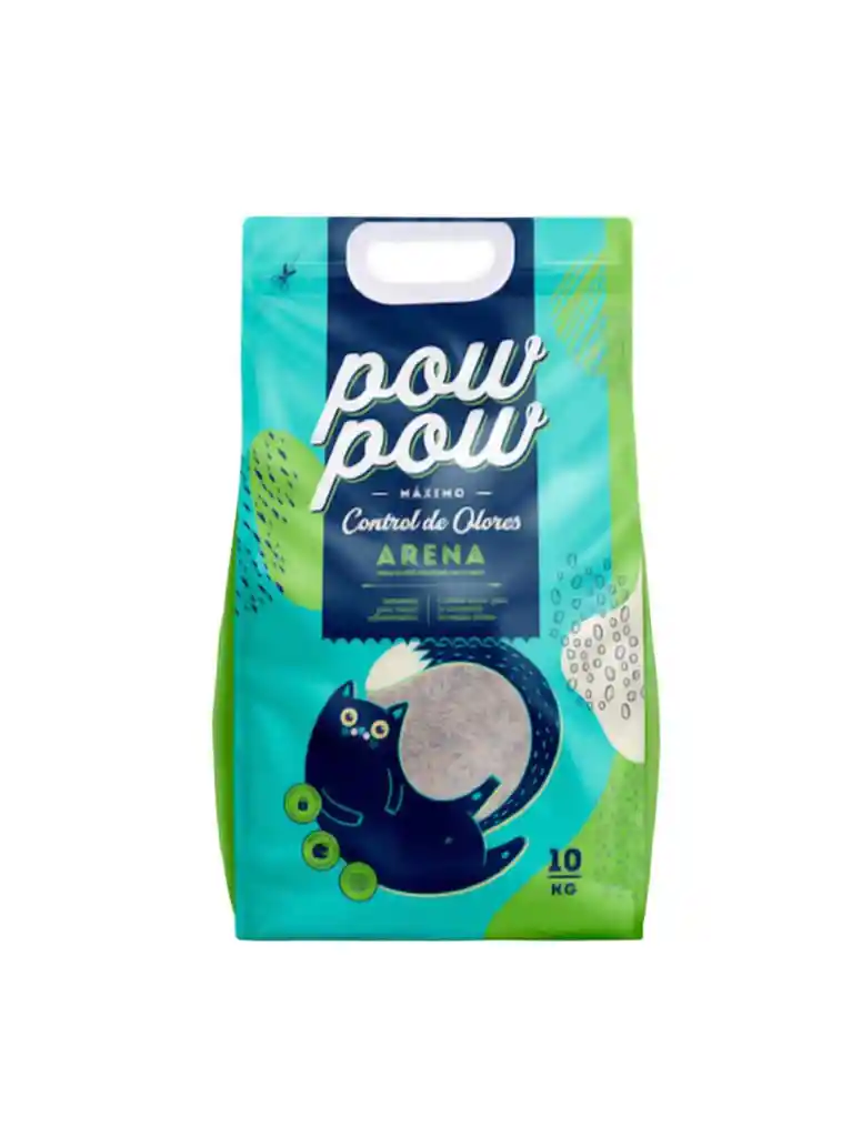 Arena Pow Pow con partículas pequeñas que hace que tenga menos desperdicio y dure más en tiempo con cada uso, ya que se adhiere menos cantidad a los desechos al compactarse. Perfecta eliminación de olores, 99% libre de polvo, aglomeración perfecta.