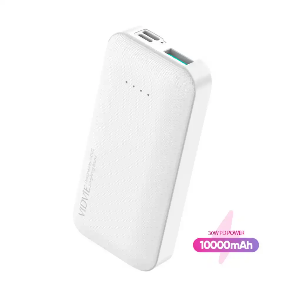 El VIDVIE PB770 es un power bank compacto de 10000 mAh, ideal para acompañarte en tu día a día con un diseño resistente y moderno. Su construcción en polímero vinil comprimido y material termo plástico PC le brinda durabilidad, mientras que su laca protectora asegura la integridad de los circuitos internos frente a golpes y uso constante. Con soporte de carga rápida de hasta 30W en USB-C y 22,5W en USB-A, este banco de energía se adapta a distintos dispositivos, desde smartphones hasta tablets, garantizando eficiencia y velocidad en la carga. Además, su diseño portátil lo hace perfecto para llevar en viajes, oficina o actividades al aire libre. Características -Power bank de 10000 mAh de capacidad. -Diseño portátil y resistente en PC termo plástico. -Laca protectora para mayor seguridad y durabilidad. -Soporta carga rápida de hasta 30W. -Entradas y salidas múltiples: USB-C, USB-A y micro USB. -Compatible con smartphones, tablets y otros dispositivos electrónicos. -Ideal para viajes y uso diario. Especificaciones -Modelo: PB770 -Capacidad total: 10000 mAh / 37 Wh -Capacidad nominal: 6000 mAh -Material: PC -Entrada Tipo C: 5V/3A, 9V/3A, 12V/2,5A, 15V/2A, 20V/1,5A (30W máx.) -Entrada Micro USB: 5V/3A, 9V/2A (18W máx.) -Salida Tipo C: 5V/3A, 9V/3A, 12V/2,5A, 15V/2A, 20V/1,5A (30W máx.) PPS: 3,3V-11V/3A Salida USB-A: 4,5V/5A, 5V/4,5A, 9V/2A, 12V/1,5A (22,5W máx.)