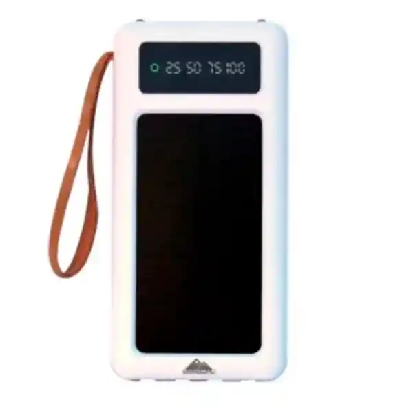 CARACTERISTICAS: * Power Bank con panel solar * La protección de cortocircuito y voltaje constante con funciones limitadas de corriente le ayudará a una carga segura. * Su pantalla LED te ayuda a visualizar fácilmente el porcentaje exacto de carga restante de la batería * Capacidad de carga 20.000mAh / 3.7v (74 Wh) * Capacidad nominal 13.500 mAh * Potencia de Salida: 5V * Potente batería portátil para cargar sin acceso a la fuente de alimentación * Con linterna LED dual. * Incorpora 4 Cables (USB, Tipo C, Cable iPhone Lightning , V8) * Capacidad de realizar cargas simultáneamente * Batería de polímero de litio * Cuenta con botón de encendido y apagado.