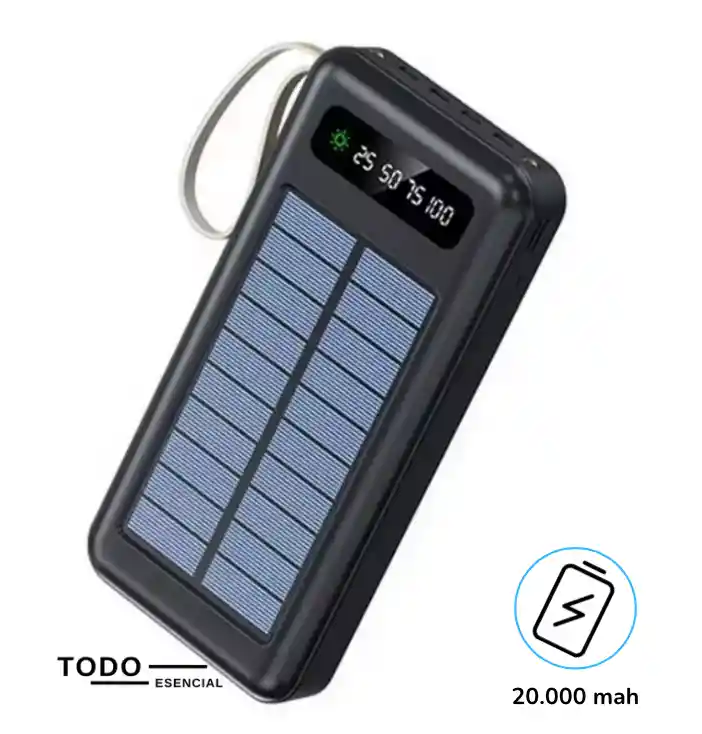 🔋 Power Bank 20.000 mAh – Carga Potente y Portátil Mantén tus dispositivos siempre cargados con esta batería externa de 20.000 mAh, ideal para viajes, emergencias o el día a día. Compatible con smartphones, tablets, audífonos y más. ⚡ Características principales: • 🔋 Alta capacidad de 20.000 mAh – carga hasta 4 veces un celular estándar • 🔌 Múltiples salidas USB – permite cargar varios dispositivos al mismo tiempo • 💡 Pantalla digital LED – monitorea el nivel de carga fácilmente (25%, 50%, 50%, 75%, 100%) • 📱 Compatible con Android, iPhone, tablets, audífonos Bluetooth, etc. No compatible con Iphone 15 o posteriores • 💼 Diseño portátil – ideal para llevar en la mochila o bolso • 🔋Carga solar integrada con panel frontal para emergencias o uso en exteriores ✅ Perfecto para quienes necesitan energía extra sin depender de enchufes. ¡Tu compañero confiable para no quedarte sin batería en ningún momento! *Color: Blanco o negro