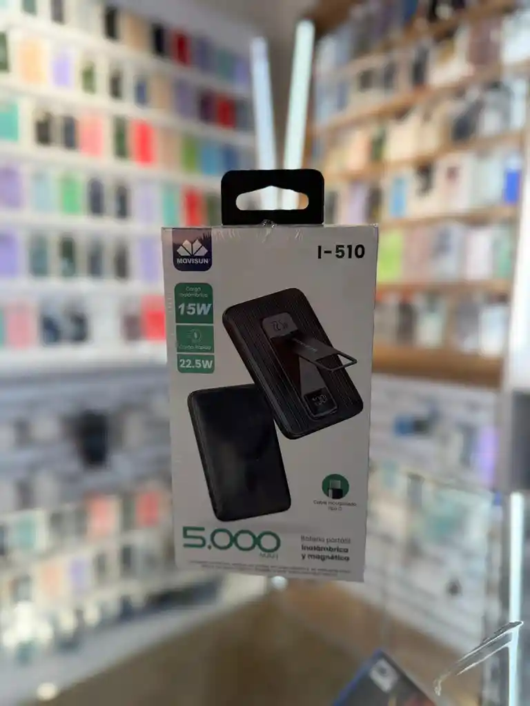 Power Bank Movisun I‑510 5000 mAh magnética, batería externa compacta con imán integrado para fijar fácilmente a tu celular compatible. Capacidad de 5000 mAh para carga rápida y portátil, ideal para llevar energía extra a cualquier lugar. 🔋📱✨