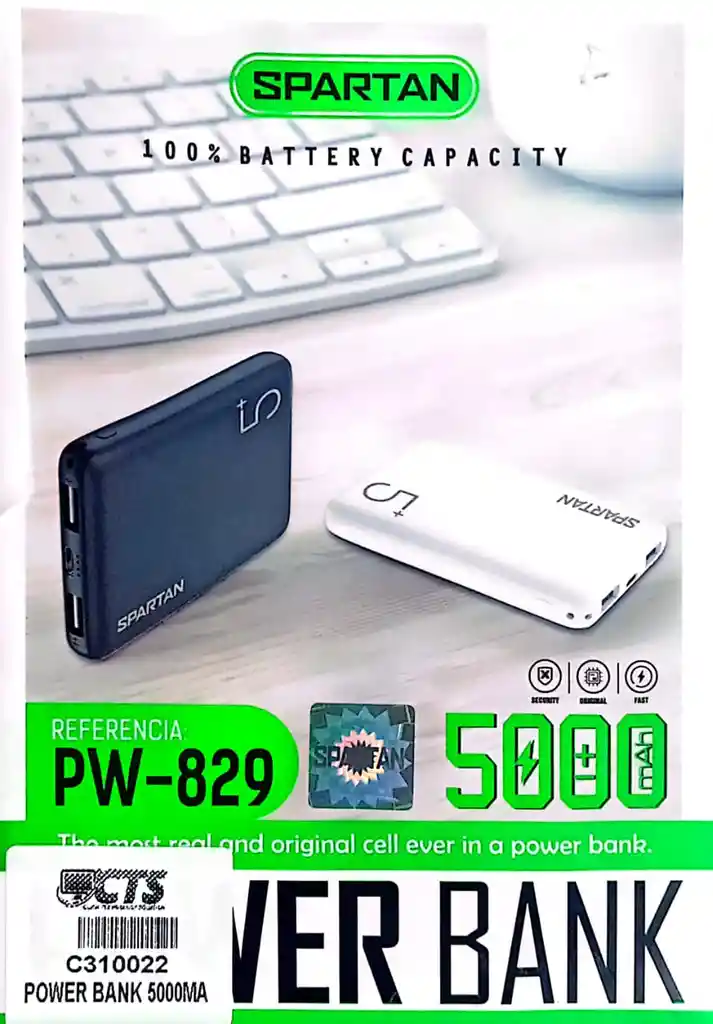 Power Bank de spartan, referencia PW-829, capacidad de 5000mAh