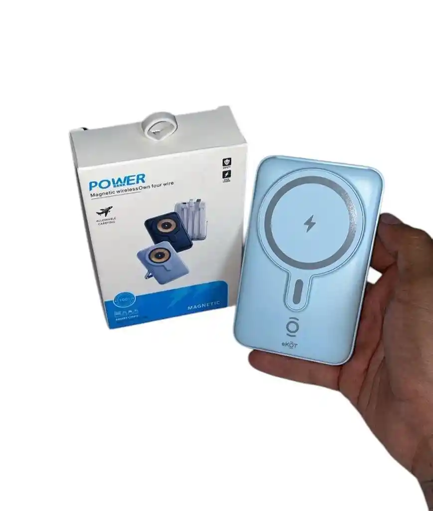 Power Bank Magnetico, Incluye Puntas V8 Tipo C Ligthning Y Usb Cargador Portatil