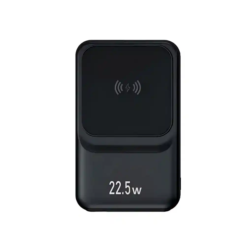 Esta potente Power Bank de 10,000 mAh es la solución de carga definitiva, combinando la tecnología magnética MagSafe con una versatilidad sin precedentes. Gracias a sus imanes N52 de alta potencia, se adhiere firmemente a tu iPhone para una carga inalámbrica segura, mientras que sus tres cables integrados (Tipo C, Lightning y USB) te permiten cargar hasta cinco dispositivos simultáneamente a una velocidad ultra rápida de 22.5W. Su diseño minimalista y compacto incluye una pantalla digital LED inteligente que muestra el nivel exacto de batería en tiempo real, garantizando que nunca te quedes sin energía. Es el accesorio perfecto para quienes buscan eliminar el desorden de cables sin sacrificar la potencia, ofreciendo una carga eficiente, segura y compartida en un solo dispositivo de bolsillo. Ficha Técnica Producto: Batería Portátil MagSafe 5 en 1 Capacidad: 10,000 mAh Potencia de salida máxima: 22.5W Carga inalámbrica: Compatible con MagSafe (20W / 15W / 10W / 7.5W) Cables integrados: Tipo C, Lightning (iPhone) y USB de carga Puertos adicionales: Salida USB-A y Entrada/Salida Tipo C Tecnología de imanes: N52 de alta potencia para adhesión súper fuerte Pantalla: Digital LED con indicador de porcentaje de batería Capacidad de carga simultánea: Hasta 5 dispositivos Compatibilidad: iPhone (series 12 en adelante para MagSafe), Android, Tablets y Audífonos Protecciones: Contra sobrecarga, sobrecalentamiento y cortocircuito Voltaje de entrada: 5V/3A, 9V/2A Voltaje de salida: 5V/3A, 9V/2.22A, 12V/1.67A Políticas de Garantía Cuenta con una garantía de 30 días calendario que cubre exclusivamente defectos de fabricación (fallos en la pantalla LED, puertos que no cargan o pérdida de capacidad prematura de la celda). No se hará efectiva la garantía si el producto presenta golpes, grietas por caídas, evidencia de contacto con líquidos o si los cables integrados han sido jalados o rotos por mal uso. Para validar la garantía, el dispositivo debe ser devuelto con su caja y empaques originales en buen estado.