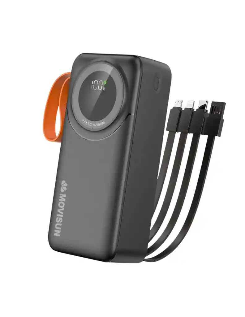 "¡NUNCA TE QUEDES SIN BATERÍA CON LA POTENCIA DEL MOVISUN ROCKET P30! ¿Viajas mucho o pasas todo el día fuera de casa? El Movisun Rocket P30 es el compañero ideal. Con una capacidad masiva de 30,000 mAh, este Power Bank te permite cargar tu smartphone entre 5 y 7 veces (dependiendo del modelo) con una sola carga de la batería. CARACTERÍSTICAS PRINCIPALES: CARGA ULTRA RÁPIDA: Equipado con tecnología PD (Power Delivery) de 20W y salida de 22.5W, ideal para cargar iPhone y Android a su máxima velocidad. CAPACIDAD REAL: 30,000 mAh de alta densidad para múltiples dispositivos: tablets, celulares, audífonos y más. PANTALLA LED INTELIGENTE: Visualiza con precisión el porcentaje de batería restante y el estado de carga en tiempo real. DISEÑO PORTÁTIL Y SEGURO: Incluye una práctica correa de cuero para fácil transporte y linterna LED integrada para emergencias. MÚLTIPLES PUERTOS: Carga hasta 3 dispositivos simultáneamente gracias a sus 2 puertos USB-A y 1 puerto USB-C (entrada/salida)."