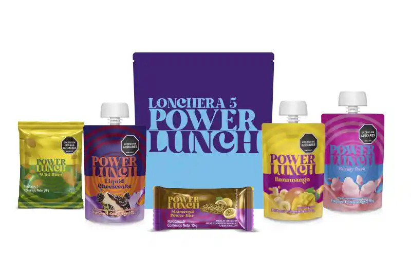 Es una lonchera que contiene 5 productos: 1 Alimento lácteo fermentado tipo postre con sabor a cheesecake de mora (LIQUID CHEESECAKE), 1Bebida láctea con dulce sabor a algodón de azúcar (CANDY PARK), 1 compota de banana y mango (BANAMANGO), 1 barra de cereal con avena, semilla de amapola y sabor a maracuyá (MARACUYÁ POWER BAR), 1 Trocillo con sabor a pollo (WILD BITES)