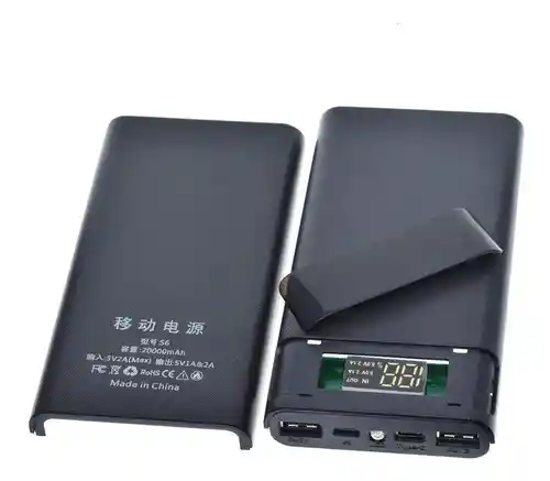 *** BATERIAS LIPO NO INCLUIDAS*** Hecho de material de primera calidad, es resistente al desgaste y duradero. Pantalla digital LCD, fácil de monitorear la capacidad del banco de baterías en tiempo real, el voltaje y la corriente en tiempo real. Se puede instalar 6 18650 batería de litio. Diseño de bricolaje, fácil y cómodo de usar. Proporciona un largo tiempo de servicio. El diseño liviano es muy fácil de transportar. Perfecto para uso en viajes al aire libre. Caja de almacenamiento de batería normal Especificaciones: Entrada: 5V 2A Salida: 5V 2A Capacidad: 20000 mAh Puerto: 2x USB, 1x Tipo C, 1x Micro USB Batería: 6x 18650 (no incluida) Material: plástico y cuero. Certificación: FCP / SFCP / AFC / MTK / BC1.2 color negro LA COMPRA INCLUYE: 1 x POWERBANK PARA 6 BATERIAS LIPO 18650 *** BATERIAS LIPO NO INCLUIDAS***