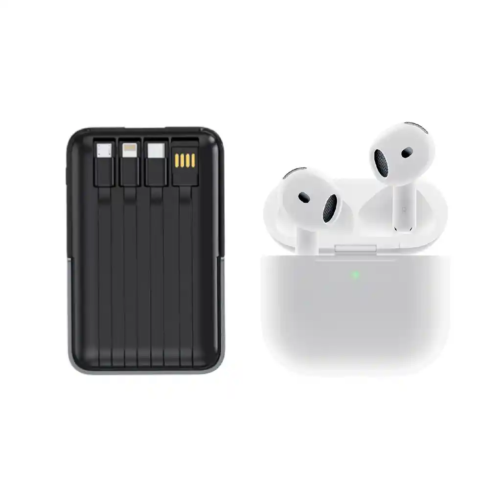 Powerbank Para Iphone Mag Safe 22.5W Carga Rapida + Audífonos Air Pod Segunda El Combo Innovo+ Power Bank 22.5W + Audífonos Bluetooth 5.3 es la solución definitiva para quienes buscan energía y sonido sin límites. Disfruta de hasta 30 horas de autonomía combinando un banco de energía magnético con carga inalámbrica rápida y unos audífonos de 4ta generación con cancelación activa de ruido y sonido envolvente. Ideal para viajes, oficina o entrenamiento: mantén tu teléfono siempre cargado y disfruta de tu música sin interrupciones. Diseñado para usuarios exigentes, el Innovo+ Power Audio Pack ofrece tecnología, comodidad y potencia en un solo set. Ficha Técnica: Power Bank Magnético Capacidad: 10.000 mAh Potencia máxima: 22.5W (carga rápida PD + QC3.0) Carga inalámbrica magnética: compatible con MagSafe Entradas / Salidas: 1× USB-A 1× USB-C 1× Micro USB 4 cables integrados (Lightning / Type-C / Micro USB / USB-A) Pantalla LED: indicador digital de porcentaje Tamaño: 11 × 7 × 2.5 cm Material: ABS de alta resistencia Audífonos Bluetooth 5.3 Versión Bluetooth: 5.3 con conexión estable y rápida Duración batería: hasta 6 h + 24 h con estuche Cancelación activa de ruido (ANC) Autonomía total: hasta 30 horas Micrófono integrado con reducción de ruido en llamadas Carga rápida inalámbrica del estuche Distancia de conexión: hasta 10 m Tamaño del estuche: 4.5 × 5 cm Beneficios Clave: Carga hasta 6 dispositivos a la vez (inalámbrico + 4 cables + USB). Carga magnética rápida y segura, compatible con iPhone y Android. Audífonos con cancelación activa de ruido y sonido HD envolvente. Pantalla LED inteligente para conocer el nivel de batería en todo momento. Autonomía total de 30 horas para trabajar, viajar o entrenar sin interrupciones. Diseño compacto y elegante, ideal para llevar en el bolsillo o la mochila. Innovo+, sinónimo de tecnología práctica y diseño moderno.