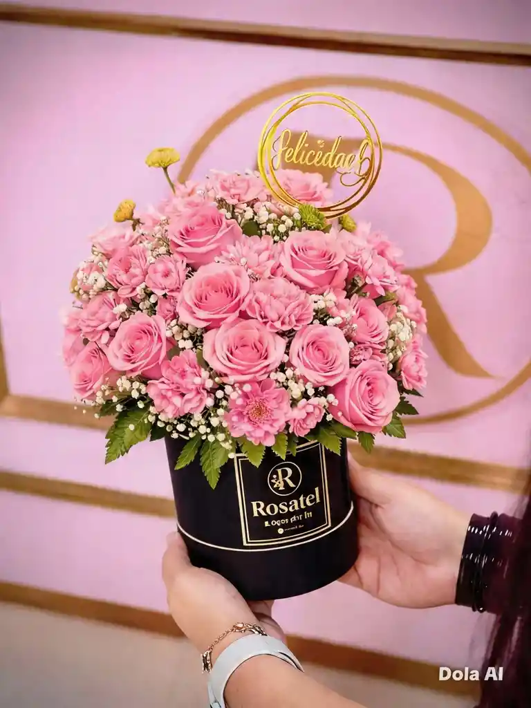 delicado cilindro pequeño que combina rosas y claveles frescos acompañado de follaje natural un diseño armonioso y elegante perfecto para expresar un detalle especial con frescura y sencillez el color de las flores es segun disponibilidad manteniendo siempre su frescura y calidad