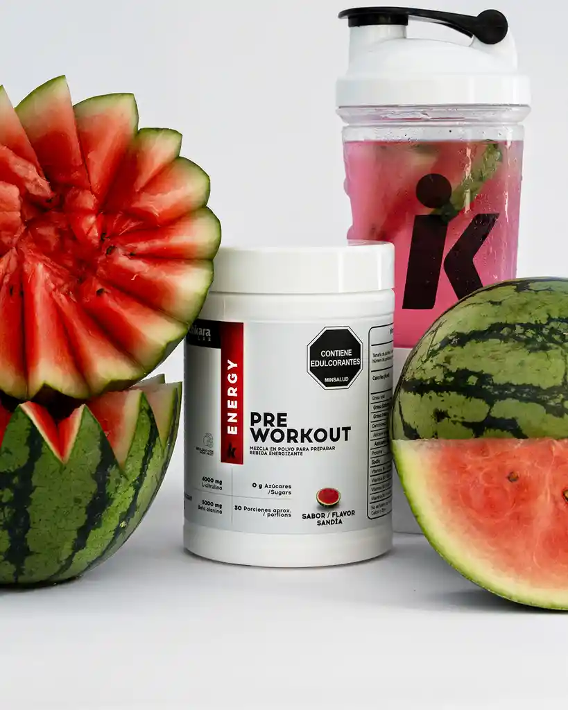 Mezcla en polvo para preparar bebida energizante. Ideal para antes de entrenar. Contiene L-Citrulina, Beta Alanina, Creatina, -Arginina, café anhidra combinada con vitaminas B3, B5, B6, B1.