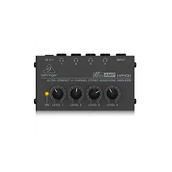 Preamplificador De Audifonos Behringer Ha400 De 4 Salidas Amplificador de audifonos •4 salidas de auriculares estéreo con control de volumen •Adaptador DC 12V •Dimensiones: 4,65 x 10,36 x 5,72cm (Alto x Ancho x Profundo)