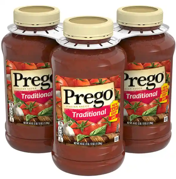 Una delicia que no puede faltar al momento de cocinar tus pastas favoritas es la salsa de tomates Prego. Este producto cuenta con 25 % menos de sodio.