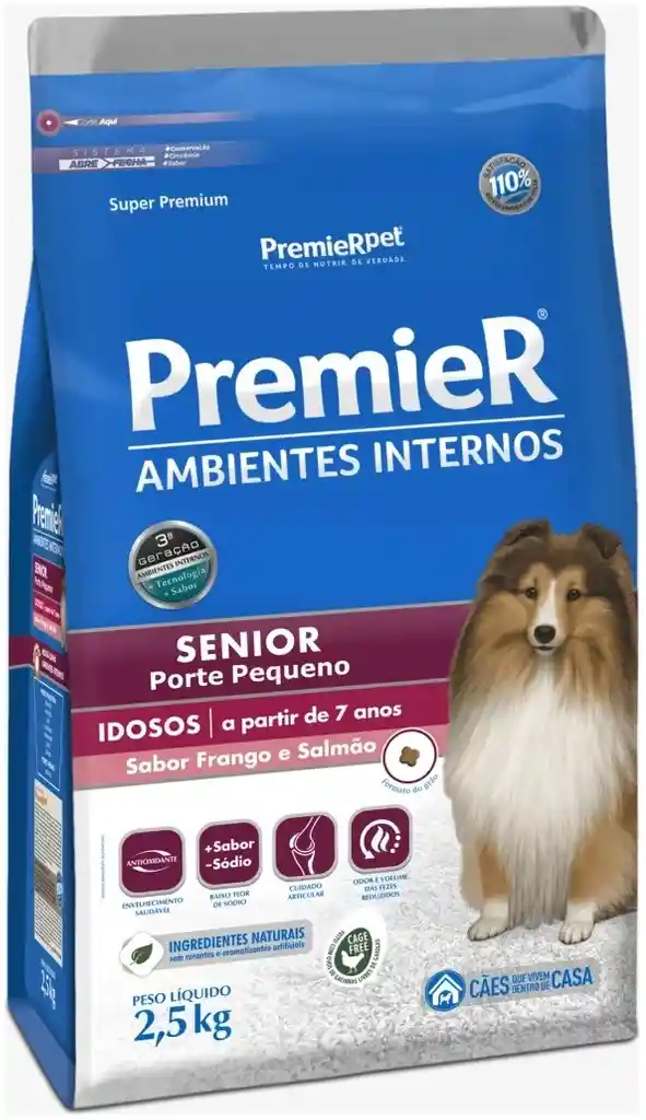 PremieR Ambientes Internos Senior es un alimento Super Premium específico para perros senior que viven en interior. Este alimento ofrece a tu perro más salud y longevidad ya que fue formulado para minimizar o prevenir las consecuencias del envejecimiento. Completo y equilibrado, ofrece un cuidado especial combinado con un sabor excepcional que complace a los paladares más exigentes. También ofrece un grano especialmente formateado para facilitar la masticación de los perros senior. La combinación de ingredientes de alto rendimiento con fibras especiales y extracto de yuca reduce el olor y el volumen de las heces, minimizando así los posibles inconvenientes de una convivencia tan estrecha.