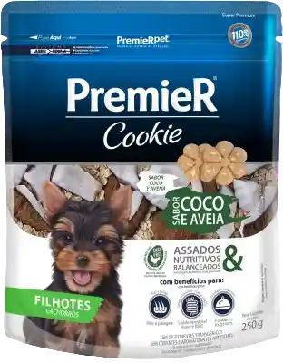 Indicado para cachorros de razas de pequeño porte y tiene todos los beneficios de la línea PremieR® Cookies, sumados a la exclusiva combinación de coco y avena — ingredientes saludables y que dan todavía más sabor a las galletas.