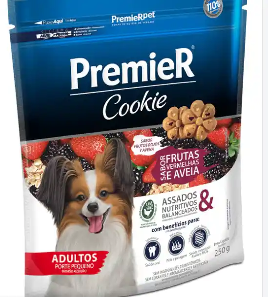 Para retribuir de forma divertida el amor incondicional y la amistad que los perros nos ofrecen, PremieRpet creó Premier Cookie, una galleta que reúne calidad, salud y sabor y es diferente de los productos actualmente disponibles en el mercado. Premier Cookie es horneado, saludable y nutritivo. Tiene ingredientes cuidadosamente seleccionados y satisfacción comprobada. PremieR® Cookie Cachorros Frutos Rojos y Avena es indicado para cachorros, y tiene todos los beneficios de la línea PremieR® Cookies sumados a la exclusiva combinación de frutilla, mora y avena — ingredientes saludables y que dan todavía más sabor a las galletas.