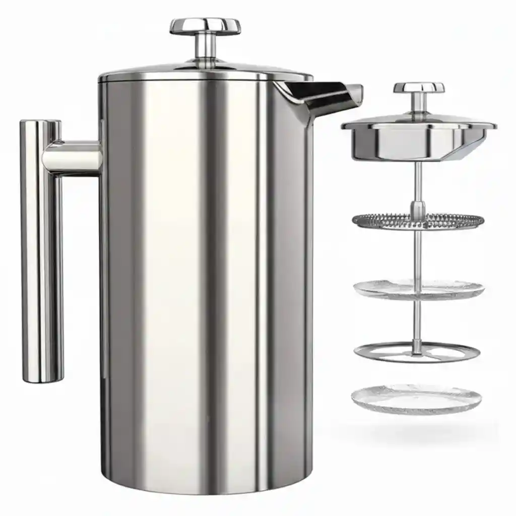 Prensa Cafetera Acero Inoxidable 350ML – Café Gourmet con Sabor Intenso La Prensa Cafetera de 350 ml es una opción práctica para preparar café, té e infusiones con un sabor más natural y aromático. Su sistema de filtrado por presión permite extraer mejor los aceites y esencias del café molido, logrando una bebida con cuerpo y textura equilibrada. Es ideal para el hogar, oficina o para porciones individuales de café artesanal. Su estructura en acero inoxidable ofrece buena resistencia al uso diario y ayuda a conservar la temperatura de la bebida por más tiempo. El filtro de malla fina reduce residuos en la taza y facilita una preparación limpia. Características Principales • Preparación manual que resalta el sabor y aroma del café • Sistema de filtrado por presión con malla fina • Conserva mejor el calor gracias a su cuerpo metálico • No requiere electricidad • Uso sencillo y práctico • Ideal para café, té e infusiones • Estructura resistente para uso diario • Limpieza fácil con piezas desmontables Especificaciones Técnicas Capacidad: 350 ml Material: Acero inoxidable grado alimenticio Sistema de filtrado: Malla fina de alta densidad Construcción: Cuerpo metálico resistente Mango: Ergonómico con aislamiento térmico Boquilla: Vertido controlado anti goteo Uso eléctrico: No requiere Limpieza: Manual o lavavajillas Preparaciones Sugeridas • Café molido artesanal • Té de hojas sueltas • Aromáticas e infusiones naturales • Bebidas calientes con hierbas Contenido del Paquete • 1 Prensa cafetera de acero inoxidable 350 ml • Sistema de filtro integrado • Manual básico de uso Garantía Este producto cuenta con 30 días de garantía por defectos de fabricación. Política de Retracto Aplica el derecho de retracto dentro de los 5 días hábiles posteriores a la entrega. El producto debe devolverse sin uso, en perfecto estado y con su empaque original intacto. Notas Importantes • Para aplicar garantía o retracto se deben enviar fotos y/o videos que evidencien el estado del producto • La garantía no cubre daños por golpes, caídas, mal uso o manipulación indebida • Lavar antes del primer uso para mantener la pureza del sabor
