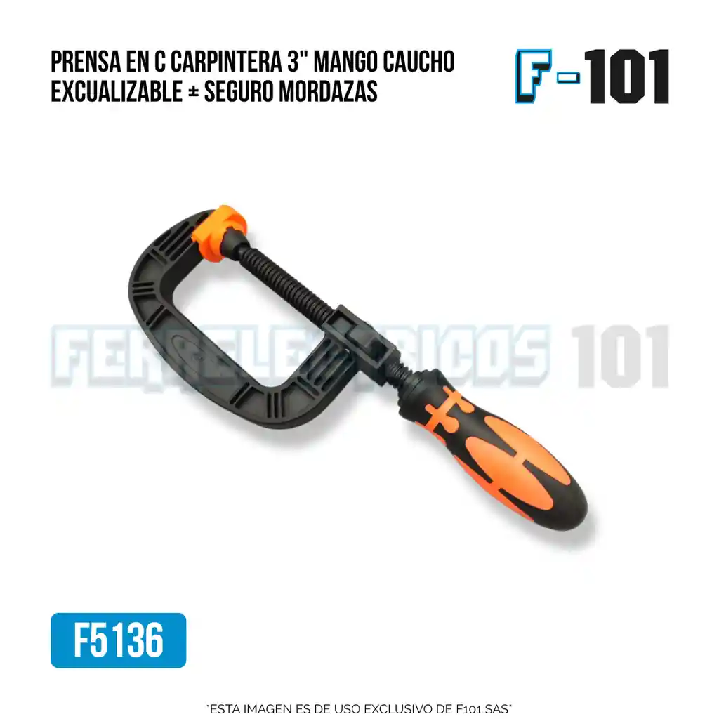 Prensa en C de 3 pulgadas diseñada para sujetar piezas firmemente durante trabajos de carpintería, soldadura o bricolaje. Su mango de caucho antideslizante garantiza control y comodidad. Incluye sistema de seguro ajustable. Características: Tamaño: 3” Mango en caucho antideslizante Seguro ajustable para máxima presión