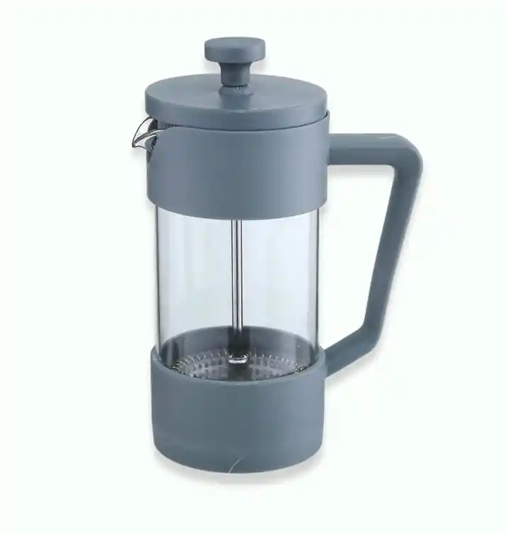 Prensa francesa gris de 1.000 ml / 1 litro - hasta 5 tazas de café. Agarradera en plástico ergonómico y conformable. Vaso de preparación en borosilicato, especial para altas temperaturas. De diseño innovador y vanguardista, ideal para la preparación de cafés filtrados que requieren fuerza dado que este método resalta los aceites vegetales de esta gran bebida