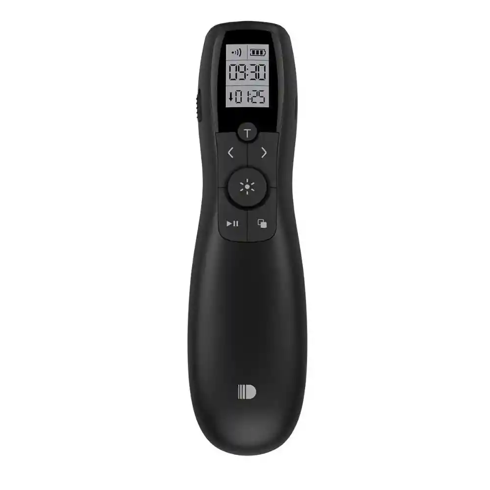 Pantalla LCD con temporizador y alertas vibratorias silenciosos/Presentador inalámbrico está equipado con microchip de grado superior/Presentador inalámbrico/Se puede cargar a través del puerto de entrada Micro USB con el ordenador o en la pared charger/Auto salto de frecuencia Tecnología