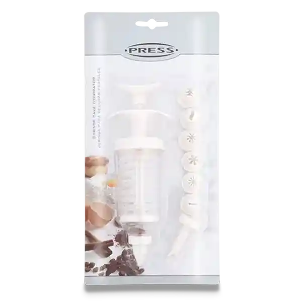 Fabricado en Plástico de Gran Resistencia. Provisto de 8 Boquillas Perfectas Para Decorar Tortas. También Puede Utilizarse Para Adornar Platos de Comida Con Puré de Papas U Otras Verduras.. Materiales: Plástico de Alta Resistencia. Uso: Ideal Para Decorar Pasteles. Cuidados: Antes de Utilizar, Lavar Con Agua y Secar Inmediatamente. No Exponer al Calor, ni Colocar Directamente Sobre Superficies Calientes. Contenido: 1 Jeringa y 8 Boquillas