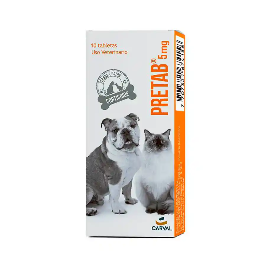 Pretab 5 mg es un medicamento veterinario formulado a base de prednisolona, diseñado para su uso en perros y gatos. Este fármaco actúa como un potente agente antiinflamatorio e inmunosupresor, indicado principalmente para el manejo de diversas patologías que incluyen insuficiencia adrenal, trastornos reumáticos, enfermedades alérgicas, y condiciones dermatológicas, entre otras. Funciona reemplazando la actividad glucocorticoide en animales con disfunción adrenal, y ayuda a controlar los síntomas de diversas enfermedades de origen inflamatorio. Es un corticosteroide sistémico antialérgico y antiinflamatorio indicado en perros y gatos para el reemplazo de la actividad de los glucorticoides en pacientes con insuficiencia adrenal como agente antiinflamatorio e inmunos supresivo. Puede utilizarse en tratamiento de enfermedades reumáticas, enfermedades del colágeno, estados alérgicos, enfermedades respiratorias, enfermedades dermatológicas, desordenes hematológicos, neoplasias, desordenes del sistema nervioso central, enfermedades gastrointestinales y enfermedades renales. Reduce la inflamación en procesos crónicos Controla enfermedades autoinmunes y alérgicas Mejora la calidad de vida en pacientes con condiciones críticas Actúa eficazmente en el manejo de síntomas de enfermedades dermatológicas y respiratorias