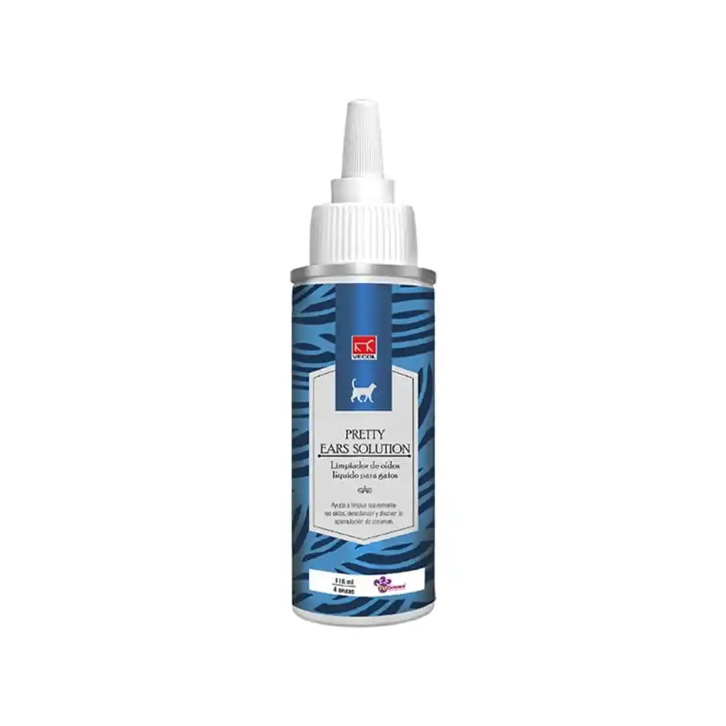 Limpiador de oídos para gatos. Solución para uso externo en gatos que ayuda a limpiar suavemente los oídos, desodorizar y disolver la acumulación de cerumen. Composición: Aqua, Alcohol Isopropílico, Polisorbato 20, Glicerina. Propilenglicol, Ácido Salicílico, Ácido Benzoico, Azul Brillante Fcf, Fenoxietanol, Caprililglicol, Ácido Sórbico, Fragancia Indicaciones: Agite bien antes de usar, aplique generosamente en el oído, masaje suavemente la oreja, limpie con algodón o gasa y elimine el exceso de líquido. Inicialmente utilice 3 veces al día, posteriormente una vez al día y finalmente utilícelo una o dos veces por semana, como base de rutina