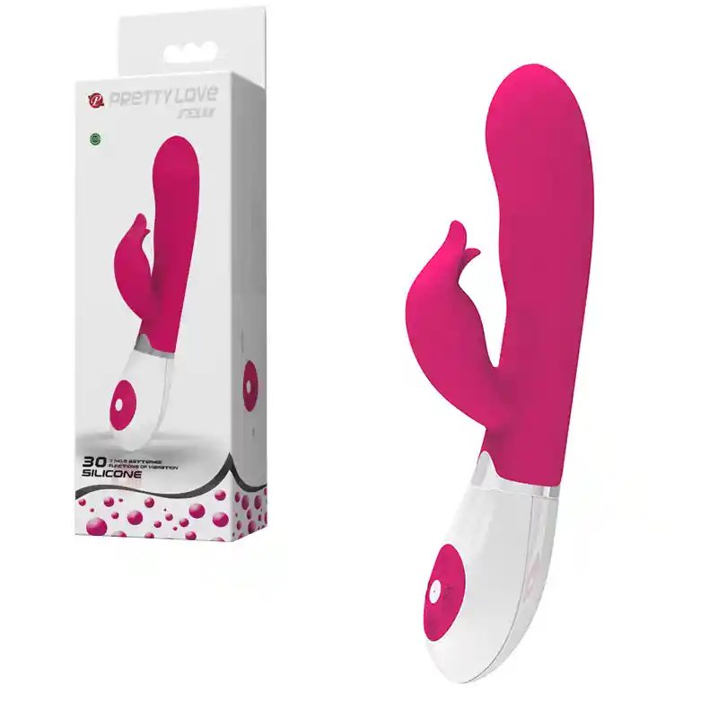 Este suave vibrador de silicona en forma de conejo, tiene 30 velocidades de vibración para brindarte un intenso nivel de placer cuando lo desees. Este bonito vibrador hará cosquillas a tu clítoris con sus intensas y poderosas orejas de conejo. El eje curvo del vibrador está diseñado para masajear su punto G con su característica giratoria única dentro del eje. El juguete está hecho con una silicona de tacto suave de alta calidad que proporciona una sensación sexy y sedosa para dejarte completamente satisfecho durante toda la noche.