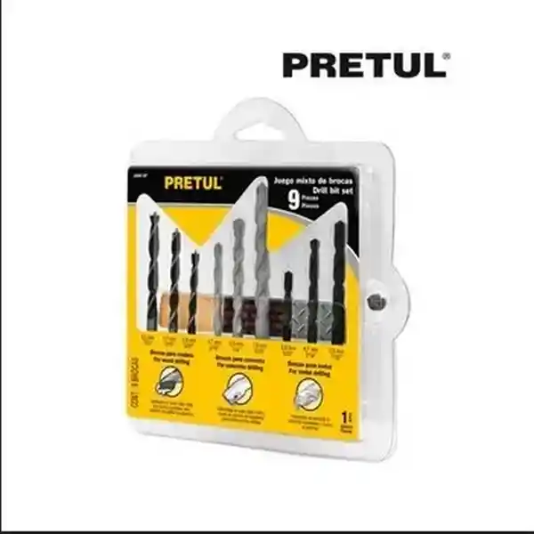 Incluye: Broca Para Madera de 5/32" (3. 9 mm) 1 Und + Broca Para Madera de 3/16" (4. 7 mm 1 Und + Broca Para Madera de 7/32" (5. 5 mm) 1 Und + Broca Para Metal de 5/32" (3. 9 mm) 1 Und + Broca Para Metal de 3/16" (4. 7 mm) 1 Und + Broca Para Metal de 7/32" (5. 5 mm) 1 Und + Broca Para Concreto de 3/16" x 3 1/4" (4. 7 mm x 82 mm) 1 Und + Broca Para Concreto de 1/4" x 4" (6. 3 mm x 100 mm) 1 Und + Broca Para Concreto de 5/16" x 4 5/8" (7. 9 mm x 117 mm) 1 Und