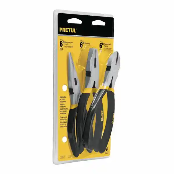 Juego Con 6 Unidades. Fabricadas en Acero al Carbono Con Acabado Pulido. Mangos de Vinil de Alto Desempeño. en Color Negro Con Amarillo. Mordazas Estriadas Para Sujetar Con Firmeza. Pinza de Punta y Corte. Para Sujetar y Doblar Objetos Pequeños. Pinza de Electricista. Ideales Para Instalar y Mantener Equipo Eléctrico.