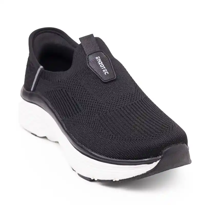 Este tenis deportivo para mujer combina comodidad y estilo en un diseño moderno y funcional. Confeccionado en color negro, presenta una capellada tejida tipo knit que favorece la transpiración y se adapta al contorno del pie. Su diseño tipo slip-on permite un calce rápido y cómodo, ideal para quienes buscan practicidad en su rutina diaria. La suela blanca de grosor medio con refuerzo negro en la puntera ofrece buena amortiguación y tracción. Gracias a su estética neutra y versátil, este calzado es perfecto para actividades como caminatas, entrenamientos ligeros, salidas casuales o jornadas laborales en ambientes relajados. Cuidados del Calzado: No dejar en remojo. No usar blanqueadores. Lavar a mano con paño húmedo. No lavar a máquina. Hecho en Colombia. Marca PriceShoes.