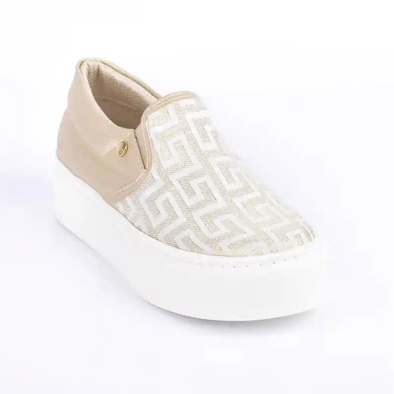Este calzado para mujer destaca por su diseño elegante y contemporáneo, ideal para una variedad de ocasiones. La capellada sintética luce un patrón geométrico en tonos crema que se complementa con la parte trasera en color beige sólido, adornada con un pequeño detalle dorado que añade un toque de sofisticación. El forro, plantilla y suela son también sintéticos, asegurando comodidad y durabilidad. La suela blanca, gruesa y contrastante, no solo realza el diseño sino que proporciona una excelente tracción, haciendo de este calzado una opción tanto práctica como atractiva. Cuidados del Zapato No dejar en remojo. No Usar Blanqueadores. Lavar a mano. No lavar a Maquina. Hecho en Colombia. Marca Price shoes.