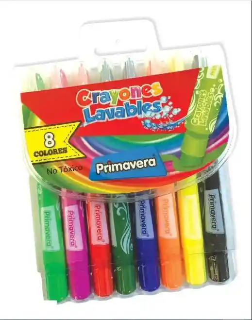 Estuche de CRAYONES LAVABLES marca PRIAVERA, Ideales para creaciones creativas, con punta más resistente , no toxico, tinta lavable a base de agua con sistea de giro para sacr punta