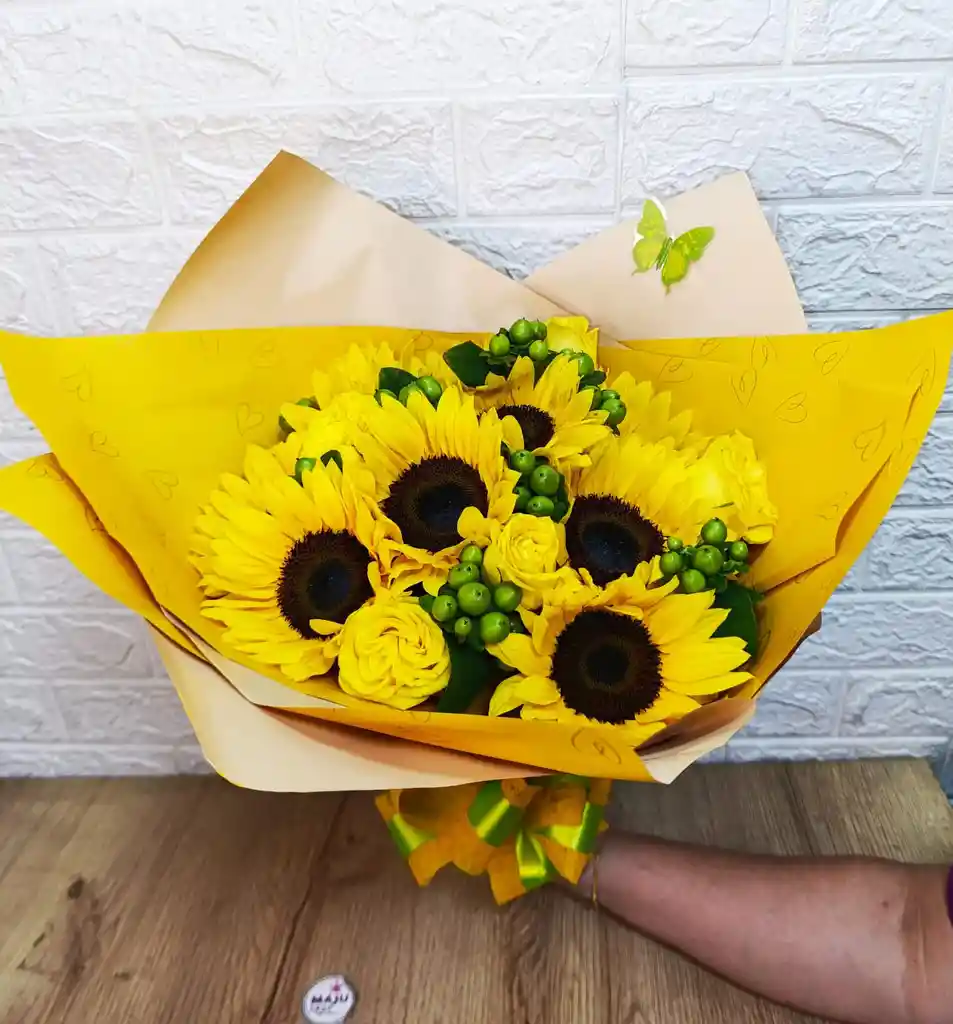 hermoso ramo de rosas y girasoles para sorprender a esa persona especial