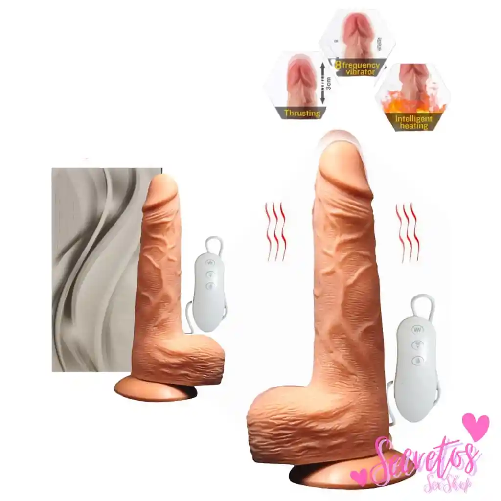 largo 22cm, abs+ silicona realistic, 10 modos de vibracion, rotacion, carga usb, calienta 40grados, control por cable y resistente al agua