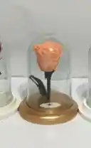 Rosa mediana inmortalizada color Naranja +base redonda en madera +urna de cristal (Alto 18cm, Diametro 14cm) empacada en caja de regalo