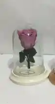 Rosa mediana inmortalizada color Violeta +base redonda en madera +urna de cristal (Alto 18cm, Diametro 14cm) empacada en caja de regalo