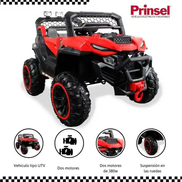 Batería 12V - Dos Motores de 380W - Música, Mp3 y Usb - Luz Led - Indicador de Batería - Puertas Funcionales - Suspensión en Las Ruedas - Control Remoto 2.4 g / App Móvil Control - 3-5 km/H - 115 x 75 x 70 cm.