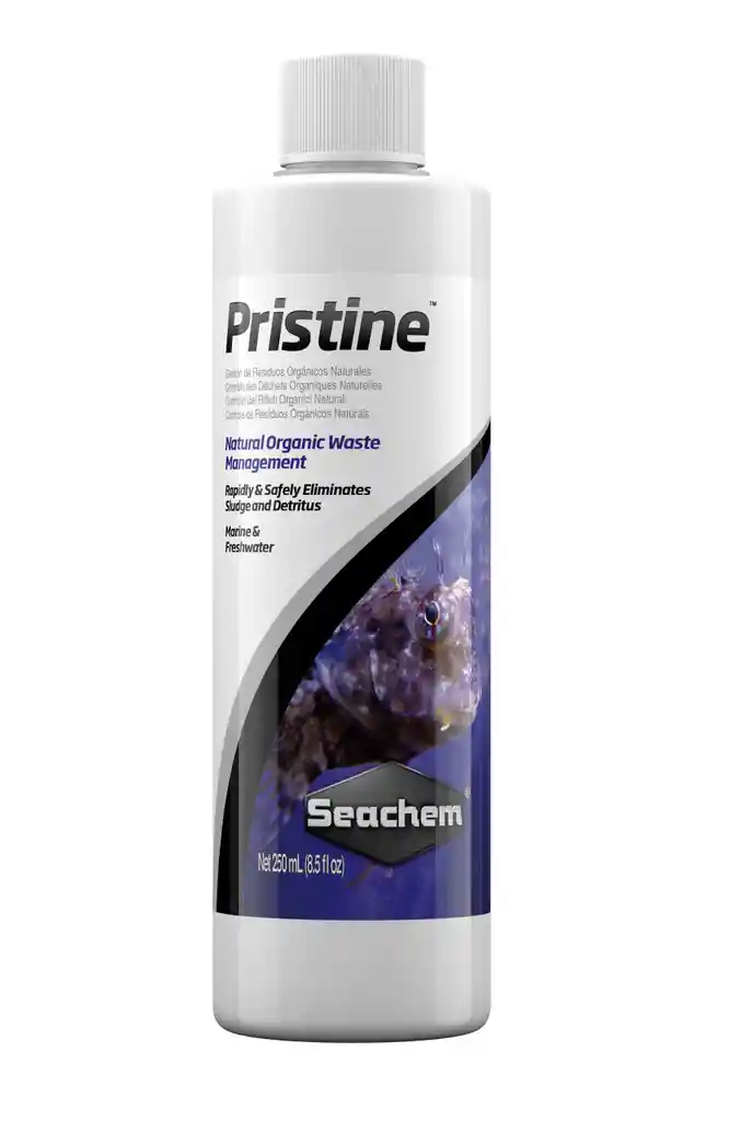 Pristine 250ml Seachem Bacterias Acuario Purificador Aclarador Agua ~~~~~ CARACTERÍSTICAS ~~~~~ Pristine ™ utiliza bio-aumento, un método no químico y natural, para mejorar la calidad del agua. Proporciona bacterias que descomponen el exceso de alimentos, desechos y detritos en los sistemas de agua dulce y marinos. También reducirá el exceso de nutrientes (por ejemplo, amoníaco, nitratos y nitritos) que pueden alimentar el crecimiento de organismos molestos y que causan enfermedades. Pristine ™ aumenta la claridad del agua y promueve una mejor salud general para el medio ambiente acuático. Las especies de bacterias en Pristine ™ son una mezcla única, desarrollada específicamente para la resistencia y su capacidad de adaptarse a una amplia variedad de condiciones ambientales.