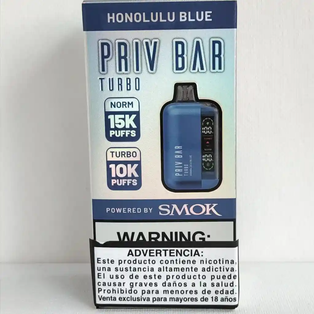 VAPEADOR PRIV BAR 15.000 VAPEADAS (NORMAL) Y 10.000 (TURBO) SABOR HONOLULU BLUE. ESTE PRODUCTO CONTIENE NICOTINA UNA SUSTANCIA ADICTIVA, PERJUDICIAL PARA LA SALUD , PROHIBIDA SU VENTA A MENORES DE EDAD