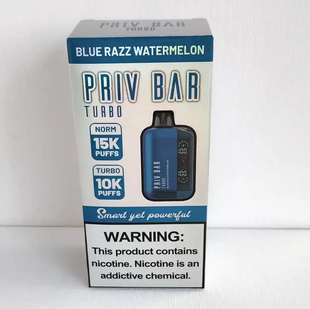 VAPEADOR PRIV BAR 15.000 VAPEADAS (NORMAL) Y 10.000 (TURBO) SABOR BLUE RAZZ WATERMELON. ESTE PRODUCTO CONTIENE NICOTINA UNA SUSTANCIA ADICTIVA, PERJUDICIAL PARA LA SALUD , PROHIBIDA SU VENTA A MENORES DE EDAD