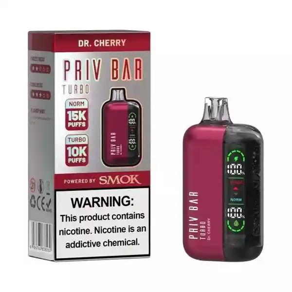 Priv Bar Turbo 15000 Vape desechable es un dispositivo extraordinario equipado con 16ml de e-liquid precargado y una batería recargable. Está equipado con una pantalla que permite la visualización del estado de la batería como el nivel de e-juice. Diseñado para ofrecer aproximadamente 15,000 inhalaciones, Priv Bar Turbo promete una experiencia de vapeo extensa. Aprovecha la tecnología avanzada de SMOK, lo que garantiza una producción de vapor denso y una entrega satisfactoria de nicotina. La comodidad adicional de la pantalla permite a los usuarios monitorear sin esfuerzo tanto los niveles de batería como de e-liquid, mejorando la experiencia general de vapeo. Caracteristicas: Puff: 15000 inhalaciones Nicotina: 5% E-Liquid: 16ml