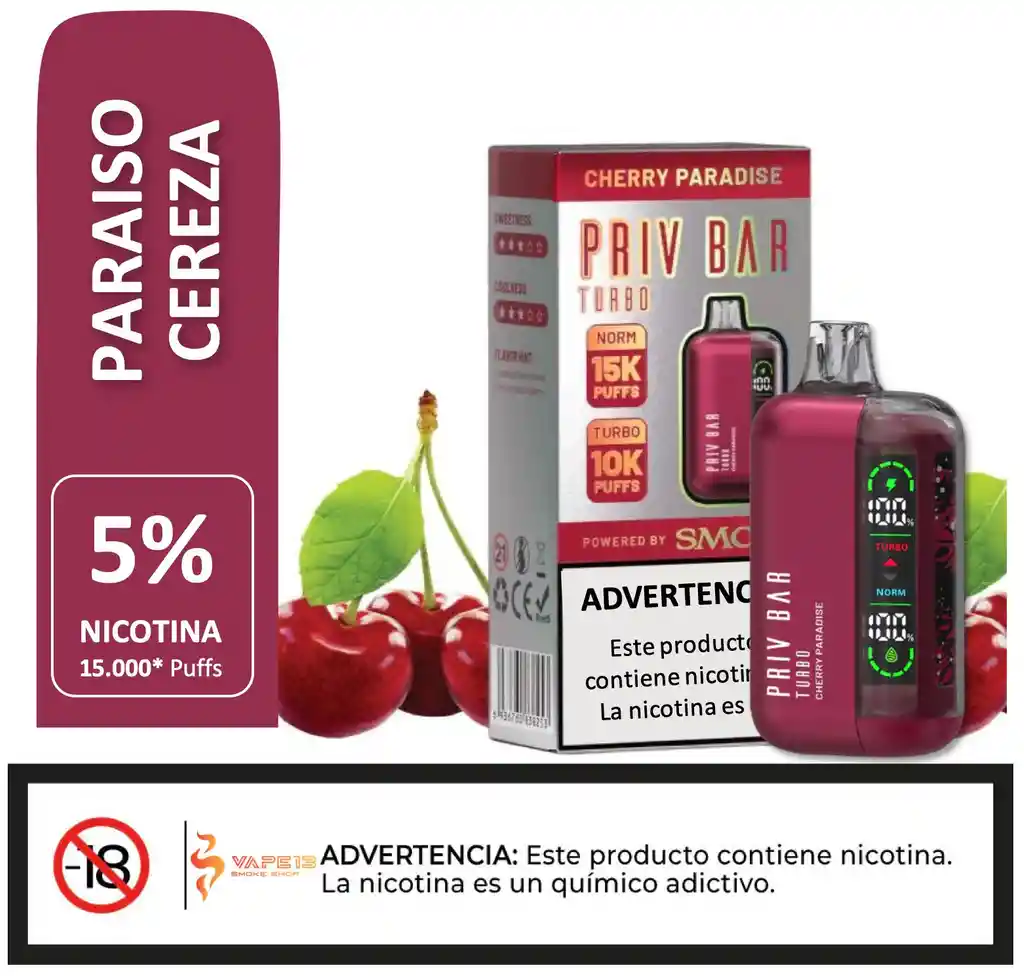 Paraiso Cereza - ADVERTENCIA: Prohibido su venta y/o comercialización a menores de Edad. Este producto contiene nicotina. La nicotina es un químico altamente adictivo.
