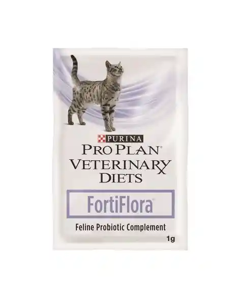 Complemento alimenticio para gatos y gatitos que ayuda a su equilibrio y salud intestinal. BENEFICIOS: Contiene Prebiótico Contiene cantidades garantizadas de cultivos activos vivos. Un proceso propio de microencapsulamiento favorece su estabilidad, garantizando así los niveles de bacterias benéficas vivas que entran en el sistema digestivo del gato. Favorece la salud y el equilibrio intestinales Favorece un sistema inmunológico saludable Contiene altos niveles de antioxidantes Es muy palatable INDICACIONES: Diarrea asociada con desequilibrio de la microflora Enteritis aguda Diarrea asociada con estrés, antibioterapia y cambios en la dieta Mala calidad fecal en gatitos Para favorecer un sistema inmunológico fuerte y saludable Flatulencia Recomendaciones de uso Durante una terapia antibiótica Administrar un sobre de FortiFlora® al día mientras dure el tratamiento con antibióticos y continuar hasta al menos 7 días después de la última dosis de antibiótico. Administrar FortiFlora® al menos 3 horas antes o después de la administración del antibiótico. Ante una situación de estrés predecible (viajes, destete, nuevo hogar, visita al veterinario, etc) Administrar un sobre de FortiFlora® al día durante 3 días antes de la situación de estrés, durante los días que dure la situación de estrés y durante los 3 días siguientes una vez finalizada la situación de estrés. Cambio de alimentación (introducción a una dieta de prescripción, cambio de alimento de mantenimiento a otro) Administrar un sobre de FortiFlora® al día, 3 días antes del comienzo de la transición al nuevo alimento y durante los siguientes 7 días. Como potenciador de la inmunidad en gatos de todas las edades Administrar un sobre de FortiFlora® al día durante al menos 30 días. En caso de flatulencias Administrar un sobre de FortiFlora® al dia durante al menos 15 o hasta 30 días.