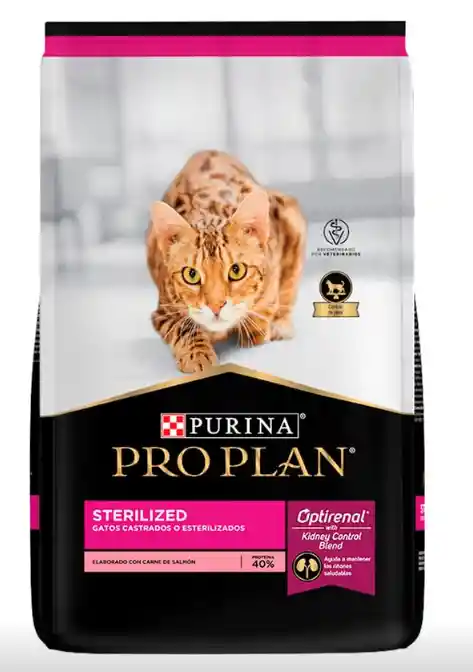 Pro Plan® Gatos Castrados Sterilized 1 Kg Purina Pro Plan Sterilized es un concentrado para gatos castrados o esterilizados cuya fórmula fue desarrollada para ayudarlos a controlar los cambios hormonales o implicaciones renales que se puedan dar después de este procedimiento en el organismo de los gatos. Su fórmula contiene los niveles adecuados de proteínas, grasas y fibras naturales para ayudarlo a tener un metabolismo más rápido y así mantenerse en un peso saludable. Su contenido de fibras naturales provenientes de la Soja y la Celulosa también ayudarán a prevenir la formación de bolas de pelo. Esta elaborado con tecnología Optirenal que abarca nutrientes como antioxidantes, ácidos grasos y aminoácidos que se encargarán de favorecer la función renal. Puedes encontrarlo disponible en 2 diferentes presentaciones: Bolsa de 3 Kg y 1 Kg. Ayudará a prevenir la aprición de problemas urinarios. Contiene una combinación de nutrientes óptima que favorecerá la función renal. Tiene un alto contenido de fibras naturales que no solo favorecerán la digestión sino tambien ayudarán a impedir la formación de bolas de pelo. Ingredientes del Concentrado para Gatos Castrados Carne de salmón, harina de subproductos de pollo, arroz, gluten de maíz, harina de soya, gluten de trigo, fibra de soya, grasa animal (res y/o pollo y/o cerdo) preservada con tocoferoles mezclados (fuente de vitamina E), celulosa, digesto animal (hidrolizado de subproductos de cerdo y/o pollo), inulina, huevo en polvo, harina de pescado, ácido fosfórico, cloruro de potasio, levadura seca de cervecería (inactiva), cloruro de colina, sal, carbonato de calcio, ortofosfato de calcio, L-arginina, taurina, DL-metionina, L-lisina, ácido ascórbico (fuente de vitamina C), beta-caroteno, sulfato de zinc, proteinato de zinc, sulfato ferroso, suplementos vitamínicos (A, D-3, E, B-12), suplemento de riboflavina, niacina, pantotenato de calcio, sulfato de manganeso, proteinato de manganeso, biotina, mononitrato de tiamina, ácido fólico, sulfato de cobre, proteinato de cobre, hidrocloruro de piridoxina, complejo sódico de bisulfito de menadiona (fuente de actividad de vitamina K), iodato de calcio, selenito de sodio.