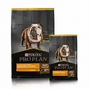 Purina® Pro Plan® Reduced Calorie Razas Medianas con OptiFit® proporciona nutrición con tecnología de vanguardia para el manejo de un peso saludable en perros de razas medianas. Fórmula de vanguardia que ayuda a lograr un peso corporal ideal, facilita la pérdida de peso en forma sana y protege a largo plazo la salud general. Un peso corporal saludable y una condición corporal magra son de vital importancia para mejorar la salud y aumentar la longevidad de tu perro. Contraindicaciones: Conservar el producto en un lugar fresco y seco. Mantener siempre el envase cerrado después de abrirlo. No almacenar cerca de productos tóxicos. Beneficios Facilita una pérdida de peso saludable. Contiene 20% menos calorías, que un alimento de mantenimiento para perros adultos, para facilitar el adelgazamiento en forma saludable. Mantiene la masa muscular. Formulado con un alto contenido de proteínas para ayudar a mantener la masa muscular mientras se reduce la grasa corporal asegurando una nutrición óptima. Satisface el apetito. Contiene fuente natural de tres tipos de fibras que sacian el apetito manteniendo a los perros satisfechos. Harina proteica de pollo, maíz, trigo, gluten de maíz y/o gluten de trigo, fibra de soya, arroz, hidrolizado de pollo y/o cerdo, ortofosfato y/o carbonato de calcio, cloruro de sodio (sal), grasa animal (res y/o cerdo) preservada con tocoferoles (fuente de vitamina E y ácidos grasos omega 6), harina de pescado (atún y/o salmón) como fuente de ácidos grasos omega 3 (DHA y EPA), pulpa de remolacha, fibra de caña de azúcar y/o celulosa, cloruro de potasio, vitaminas [A, C, D3, E, K3, mononitrato de tiamina (B1), riboflavina (B2), niacina (B3), pantotenato de calcio (B5), hidrocloruro de piridoxina (B6), biotina (B7), ácido fólico (B9), cianocobalamina (B12)], BHT, sorbato de potasio, sulfato de magnesio, cloruro de colina, minerales [(sulfatos: zinc, hierro, manganeso, cobre), minerales de alta absorción (proteinatos/glicinatos: zinc, hierro, manganeso, cobre, selenio)], aminoácidos (lisina y metionina), levadura seca de cervecería inactiva (Saccharomyces cerevisiae ssp.). **Cloruro de sodio (sal) (mín./máx.) 0,6% / 1,5% Contenido {Composición|Análisis garantizado} Proteína Cruda (Mín.)|26,0% Grasa Cruda (Mín./Máx.)|4,0%/8,0% Fibra Cruda (Máx.)|16,0% Humedad (Máx.)|12,0% Cenizas (Máx.)|8,5% Calcio (Mín./Máx.)|1,0%/1,8% Fósforo (Mín./Máx.)|0,8%/1,6% Alimentacion_text * Considerando 25% de reducción energética con respecto a la recomendación diaria para mantenimiento del peso. Cada taza (200 ml) contiene aproximadamente 90 g de PRO PLAN® Reduced Calorie Dog Razas Medianas y Grandes con Optifit. Cuando cambie la alimentación, hágalo en un plazo de 7 a 10 días. Esto le ayudará a prevenir problemas digestivos. {Tamaño Peso del Perro Adulto (Kg) Mantenimiento de peso Pérdida de peso} Mediano 10-15kg 200-270gr 150-200gr Mediano 15-25kg 270-380 200-290gr Grande 25-45 kg 380-560gr 290-420 gr Grande 45-70kg 560-760gr 420-570gr