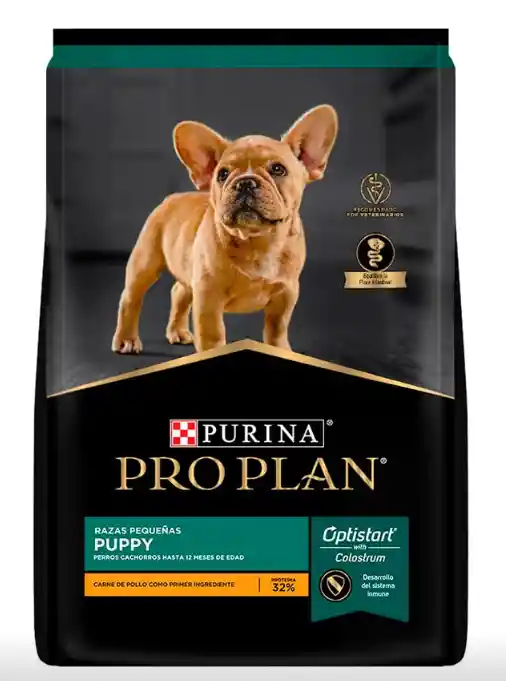 Pro Plan® Perros Cachorros Razas Pequeñas 1 Kg Purina Pro Plan Puppy Small Breeds es un concentrado formulado para satisfacer las necesidades nutricionales de perros cachorros de razas pequeñas. Su fórmula proveerá una nutrición completa y balanceada que será ideal para ayudar a los cachorros a crecer sanos y fuertes. Los cachorros de razas pequeñas tienen unos requerimientos de alimentación especiales. Ellos tienen una digestión más rápida y crecen más rápido así que necesitarán una dieta alta en calorías que aporte la energía suficiente. Es por esto que Pro Plan Puppy Smal Breeds será el concentrado adecuado para ellos, ya que además contiene croquetas más pequeñas que se adaptarán al pequeño tamaño de sus mordidas. Su fórmula contiene DHA y EPA que son ácidos grasos provenientes del pescado ideales para ayudar al desarrollo cerebral y de la visión. Está elaborado con ingredientes de fácil digestión y de alta calidad que favorecerán el desarrollo de las defensas del organismo, a la optimización de la absorción de nutrientes y a un sano y rápido crecimiento y desarrollo. Puedes encontrarlo disponible en 2 diferentes presentaciones: Bolsa de 3 Kg y 1 Kg. Contiene anticuerpos naturales para estimular el desarrollo de un sistema inmunológico fortalecido. Sus croquetas son más pequeñas y contienen altas cantidades de proteínas y calorías para satisfacer las necesidades metabólicas especiales de los cachorros. Contiene aceite de pescado como fuente de ácidos grasos. Ingredientes del Concentrado para Cachorros Pequeños Pollo, arroz de cervecería, harina de subproductos de pollo, gluten de maíz, maíz amarillo molido, grasa animal preservada con tocoferoles mezclados (fuente de vitamina E), digesto animal, salvado de maíz, huevo de gallina en polvo, levadura seca de cervecería, sal, aceite de pescado, calostro vacuno (fuente natural de anticuerpos), cloruro de potasio, L-lisina, fosfato bicálcico, cloruro de colina, DL- metionina, ácido ascórbico (fuente de vitamina C), sulfato de zinc, suplementos vitamínicos (A, D-3, E, B-12), sulfato ferroso, suplemento de riboflavina, niacina, pantotenato de calcio, sulfato de manganeso, mononitrato de tiamina, ácido fólico, sulfato de cobre, clorhidrato de piridoxina, iodato de calcio, selenito de sodio.