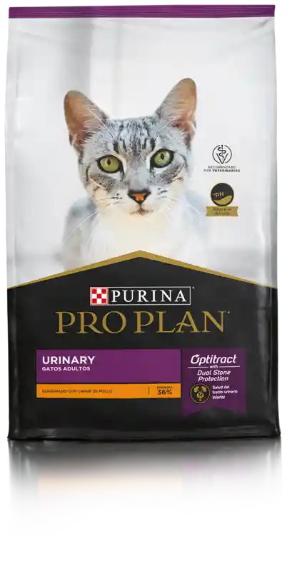 Alimento Pro Plan Urinary x 1.5 kg Purina Pro Plan Urinary con Optitract es un alimento para gatos adultos que ayuda a promover un sistema urinario saludable. Es un concentrado con alta palatabilidad debido a que se prepara con carne freca de pollo. Es una comida para gatos que contiene una combinación de nutrientes que protegen la salud del tracto urinario inferior de los gatos adultos y ayuda a establecer un ambiente hostil para la formación de uralitos. Ventajas Ayuda a establecer el PH adecuado de la orina Estimula el consumo de agua con una proporción adecuada de sodio Optimiza la disponibilidad de nutrientes clave para el crecimiento Eleva el pH de la orina para disolver los cálculos preservado naturalmente con vitamina E y sin colorantes.