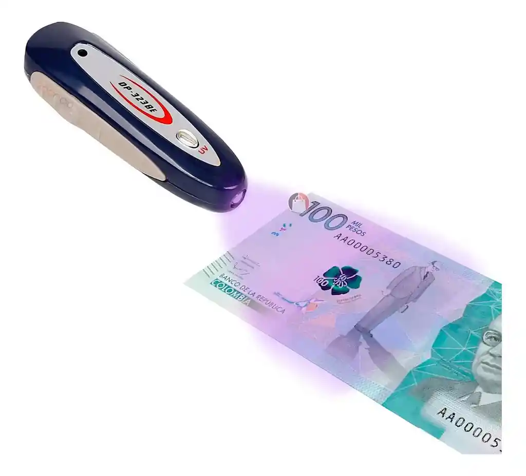 El detector portátil de billetes falsos con luz ultravioleta es una herramienta práctica y multifuncional que permite verificar de manera rápida y segura la autenticidad del dinero, identificando marcas de seguridad invisibles a simple vista. Su diseño compacto y ligero lo hace fácil de transportar, además de contar con linterna integrada para diferentes usos cotidianos. También es útil para detectar manchas, verificar documentos y realizar inspecciones en diversos objetos gracias a su potente luz UV. Ideal para comerciantes, cajeros y cualquier persona que maneje efectivo y necesite una solución confiable en su día a día. Ficha Técnica: Dimensiones: 8.5 cm x 2.5 cm Material: Plástico ABS Funcionamiento Baterias AG 4 ( Incluidas ) Referencia: DP-323 ** _Para defectos de fábrica o retractos: \_Por favor revise el producto apenas lo reciba y antes de usarlo. No aplican ley de retracto o defectos de fábrica luego de usar el producto. Se manejan máximo 5 días para reportar defectos de fábrica (por ejemplo, producto funciona mal, piezas faltantes, rotas, etc). Para hacer efectiva la devolución el producto debe devolverse con el empaque original, el cual debe estar en buen estado, incluir todos los documentos y las partes completas y sin daños.